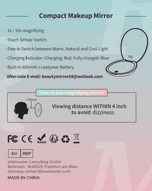 Compact Travl Mirror:It is 4.1inches diameter round mirror,only weight 0.36lb,easily fits in a purse, pocket, or travel bag, and is an ideal portable makeup Mirror for travel.Just take it easy on the go.