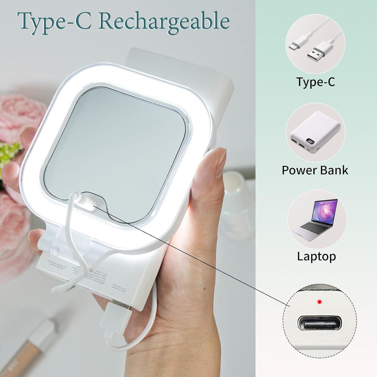 【FAST CHARGING & LONG BATTERY LIFE】: This hand held mirror features a built-in 600 mAh lithium battery that takes 1.5 hours to fully charge and provides all-day power. It comes with the Type-C charging port enables quick recharging and can be connected to an adapter, power bank, car charger, laptop, etc. There is no need to worry about replacing batteries.